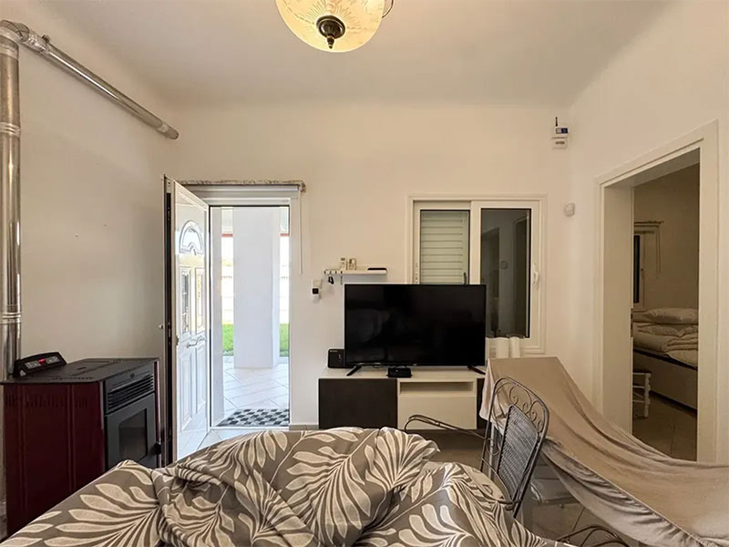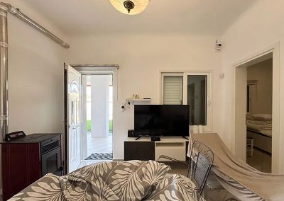 • 1 Σαλόνι: Ο ενιαίος χώρος υποδοχής περιλαμβάνει τη σόμπα πέλλετ για οικονομική θέρμανση και χώρο για τηλεόραση, με πρόσβαση στην εξωτερική βεράντα