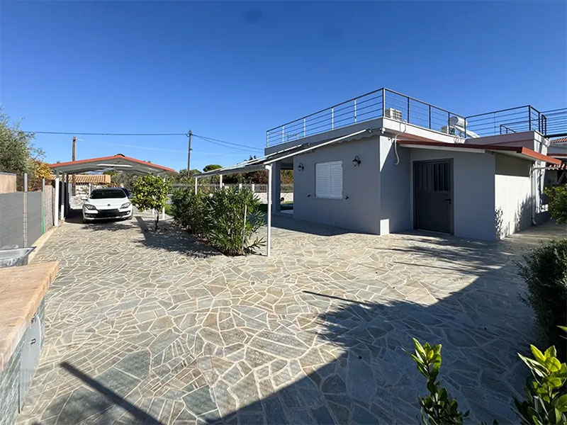 • Μεγάλο Οικόπεδο 500 τ.μ.: Διαμορφωμένος κήπος με γκαζόν και πλακόστρωτο.