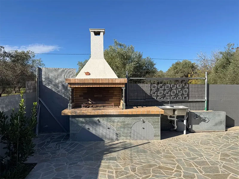 • Εντυπωσιακό BBQ: Χτιστή ψησταριά με καμινάδα και πάγκο εργασίας/νεροχύτη, ιδανική για καλοκαιρινές και χειμερινές συγκεντρώσεις.